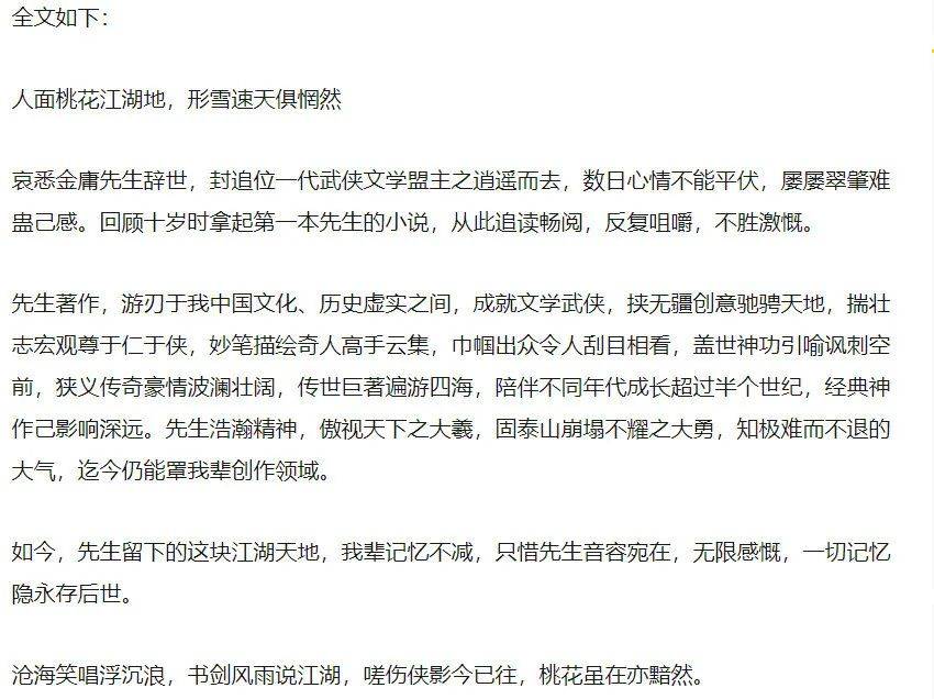 你要知道那已经是《东方不败》公映十年后的事了,而此时金庸余恨未消,言谈之间直言不快。一位武侠小说界的巨匠,一位电影武侠界的大师,就此再没有合作,真是一件憾事。